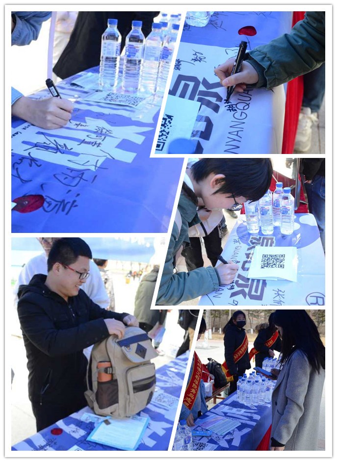 志愿者們通過科普宣傳的方式告知同學(xué)們關(guān)愛自閉癥兒童的重要性。同學(xué)們積極參與到義賣當(dāng)中,用自己的實(shí)際行動(dòng)親身參與到慈善活動(dòng)當(dāng)中,并在條幅上簽下自己的名字,留下自己獻(xiàn)出愛心的印記。