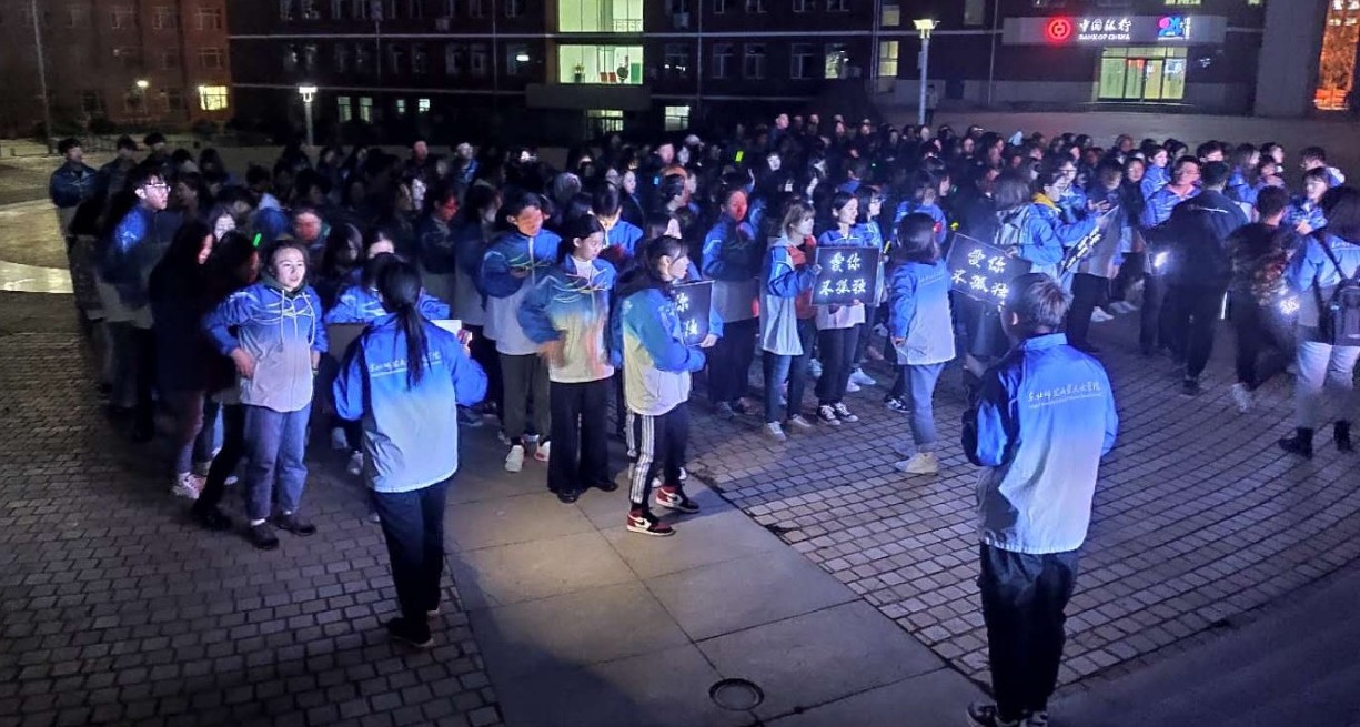 當(dāng)夜幕降臨,同學(xué)們齊聚廣場,手持熒光棒,舉行星空夜跑活動(dòng),整個(gè)校園在燈光的映襯下閃閃發(fā)光,同學(xué)們的愛心在為自己發(fā)聲,也在為每個(gè)自閉癥的兒童發(fā)光發(fā)熱!