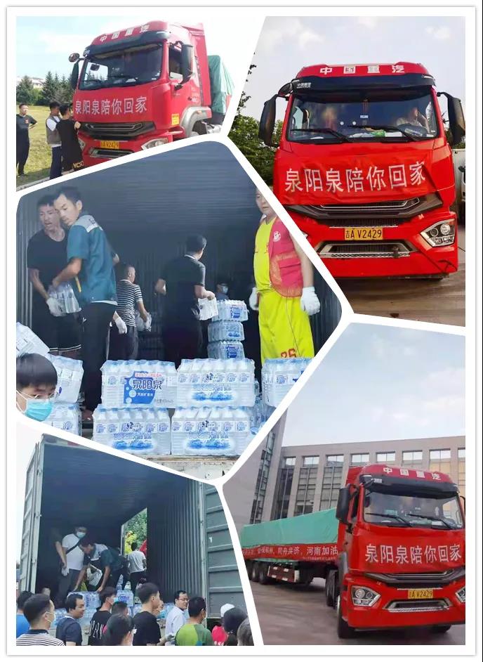 ? ? ? 今年7月中旬,河南省出現(xiàn)持續(xù)性極端強降雨,造成鄭州、新鄉(xiāng)、安陽、鶴壁等多個縣市、鄉(xiāng)鎮(zhèn)受災。河南人民群眾的生命和財產安全受到威脅。洪水肆虐,災情牽動著全國人民的心。2021年7月25日,吉林森工集團泉陽泉飲品有限公司從泉陽工廠整裝出發(fā),穿越1800公里,馳援鄭州,為河南人民送去必要的救災物資。