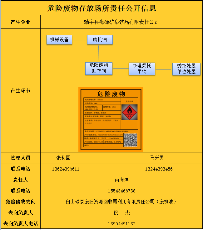 危險(xiǎn)廢物存放場(chǎng)所責(zé)任公開(kāi)信息